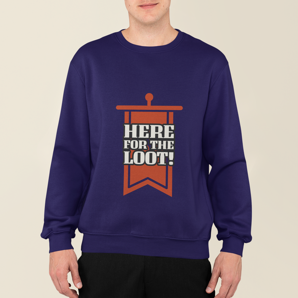 Treat yourself to the ultimate lazy day look with the HereForTheLoot sweatshirt! Crafted from ultra-soft fabric, this cozy pullover is sure to keep you comfortable and stylish with its classic fit and playful design - so go ahead and lounge around in style!