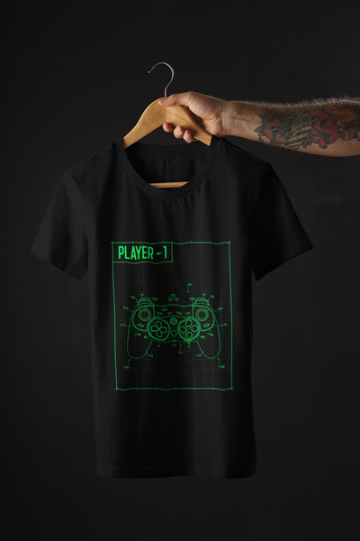 Upgrade your wardrobe with our Black Console Design T-Shirt. This crewneck shirt combines comfort with a playful design that is sure to turn heads. Perfect for gamers or anyone looking to add a touch of fun to their outfit. (Bonus points for being extra cool!)