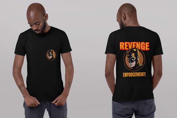 Defy the status quo with the RevengeEnforcement crewneck t-shirt. Sport this revolutionary look and make a bold statement that will turn heads. Dare to be different and get ready to unleash the power of your true identity. Get yours today and take your outfit to the next level!
