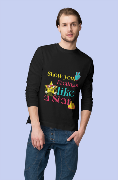 Be the star you always wanted to be with ShowYourFeelingsLikeAStar's full sleeve t-shirt. Featuring bold prints and soft, lightweight fabric, you'll look and feel your best every time you wear it! Show your personality and be the envy of your friends in this trendy, stylish t-shirt. What are you waiting for? Shine like a star with ShowYourFeelingsLikeAStar!