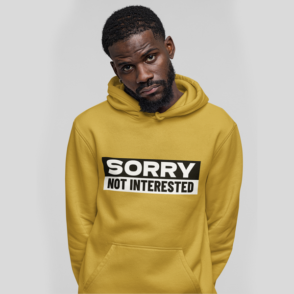 Brave the elements with style and confidence in the SorryNotInterested hoodie. Crafted from high-quality fabric, this stylish piece is designed to keep you looking sharp and feeling warm. Take on the world with comfort and style - SorryNotInterested has you covered.