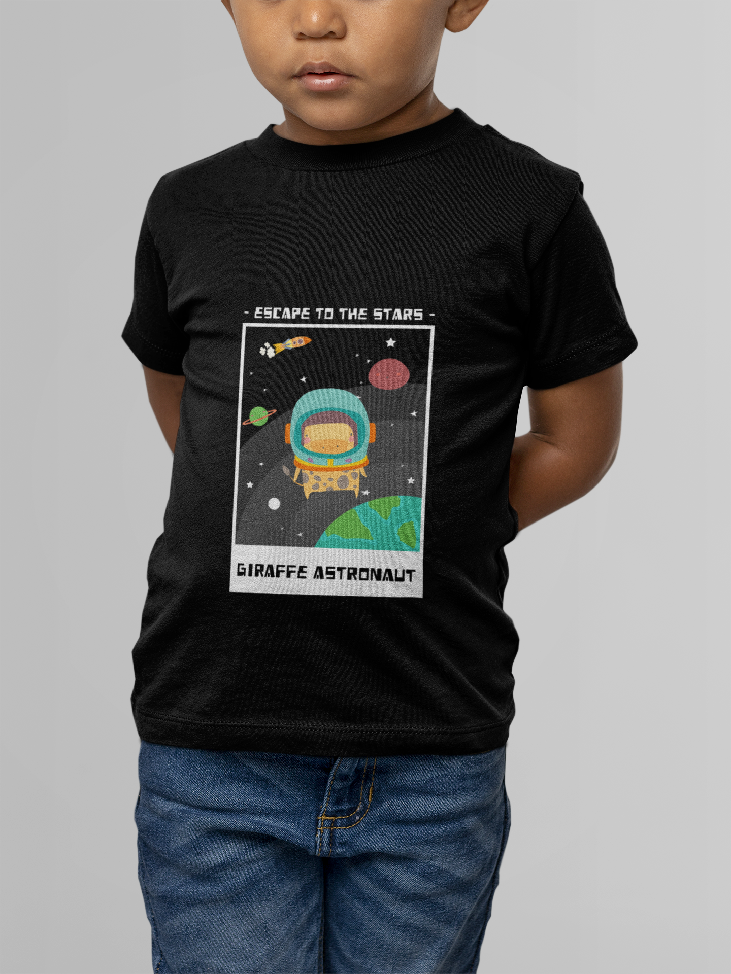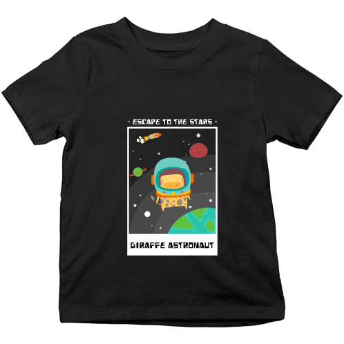 Let your little explorer reach for the stars with this Black Giraffe Astronaut Kids T-Shirt! Featuring a fun giraffe in a space suit, it sparks imagination and adventure. Made for comfort and play, this tee is perfect for everyday fun and cosmic dreams.