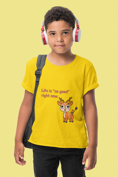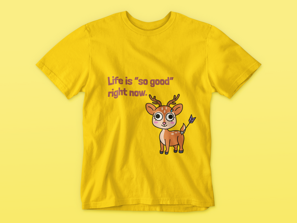 Brighten your little one’s day with this Mustard Yellow Smiling Deer Kids T-Shirt. Featuring a cheerful deer graphic, it’s perfect for playful adventures and everyday fun. Soft and comfy, it keeps kids happy and ready to explore in style.