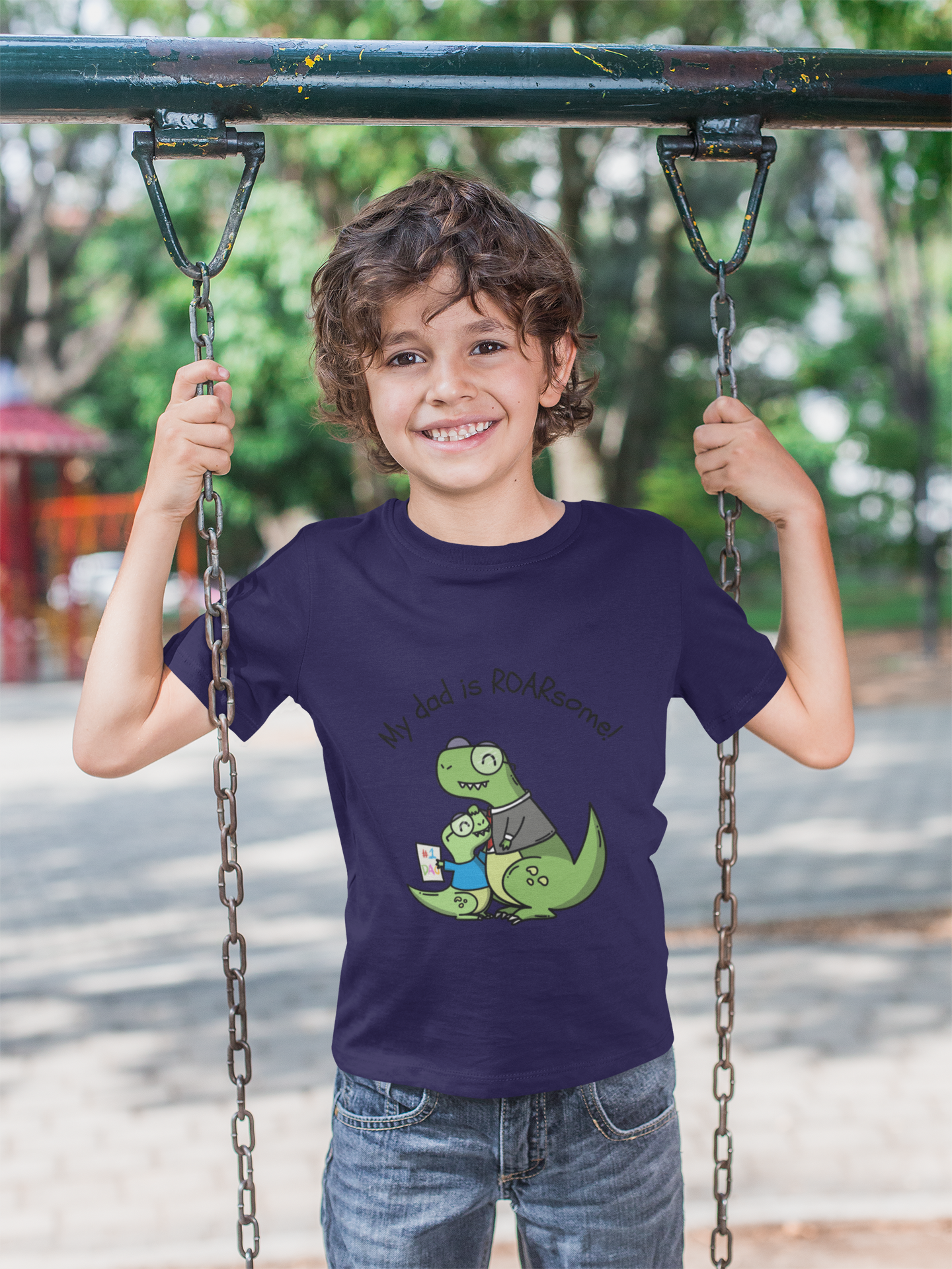 Celebrate the special bond between father and son with this playful navy blue t-shirt featuring fun dinosaur graphics. Made for comfort and style, it’s perfect for adventures, playtime, or matching moments that create lasting memories. Durable and soft, this tee keeps up with energetic little explorers while adding a touch of prehistoric fun to their wardrobe.