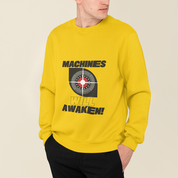 Be a part of the future with the MachinesWillAwaken Sweatshirt! Keep yourself warm and snuggly while spreading the word of a technological revolution. Plus, you'll look fashionable to boot! Guilty of having a machine heart? Don't worry, we won't tell.