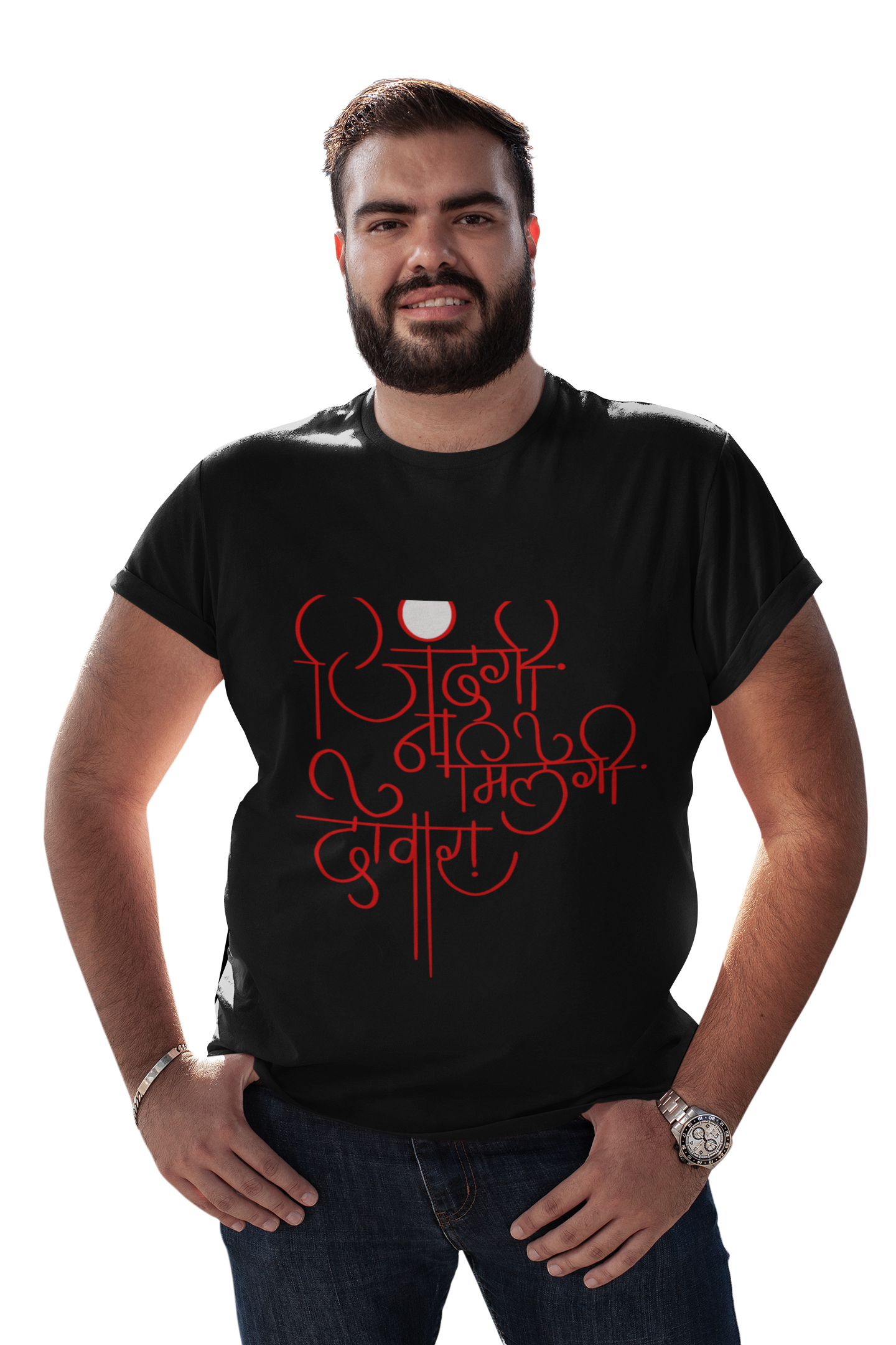 This Hindi graphic t-shirt celebrates body positivity in a playful way. Its soft and comfortable fabric makes it perfect for everyday wear, while the plus size design offers a flattering fit to all body types. A stylish and unique addition to any wardrobe.