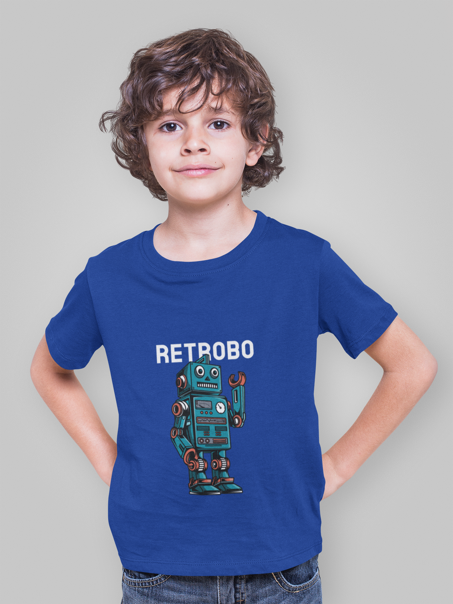 This Blue Cartoon Robot Kids T-Shirt brings fun and imagination to your child's wardrobe. Featuring a cheerful robot design in vibrant blue, it’s perfect for playtime adventures or casual days. Made with soft, comfortable fabric, it keeps kids happy and cozy all day long. Let your little one’s personality shine with this playful and charming tee!