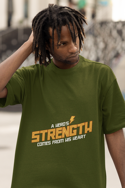 Reach peak performance every time you put on Hero's Strength's Oversize T-shirt. Its lightweight fabric lets you move with ease while its loose fit keeps you comfortable. Push yourself to be the hero of your own story and take on any challenge with confidence!