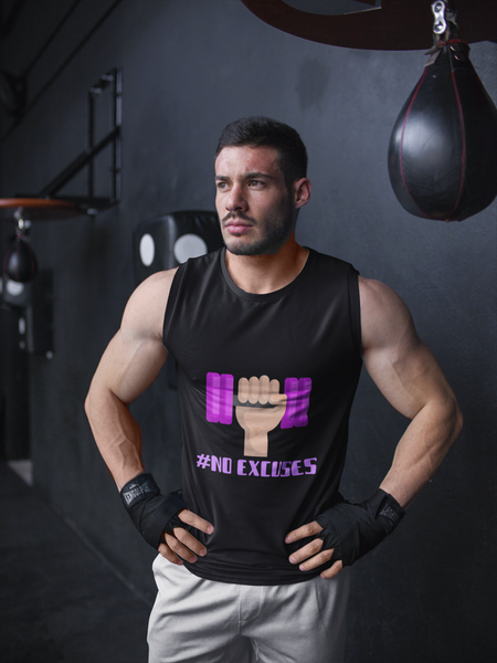 NoExcuses: Rock the sleeveless look and take charge of your life! This lightweight T-Shirt gives you the freedom to reach for your goals and crush them! Challenge yourself and never make excuses again!