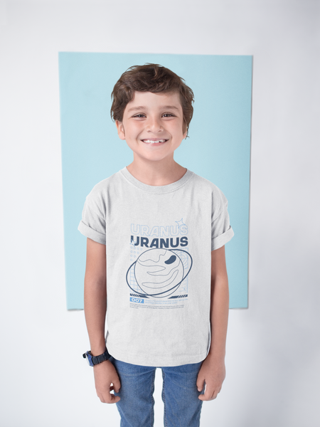 This White Planet Uranus Kids T-Shirt combines comfort and cosmic style, perfect for young space enthusiasts. Made from soft, breathable fabric, it ensures all-day comfort while showcasing a vibrant Uranus planet design. Ideal for playtime or casual outings, this tee inspires curiosity about the universe while keeping your child stylish and comfortable.